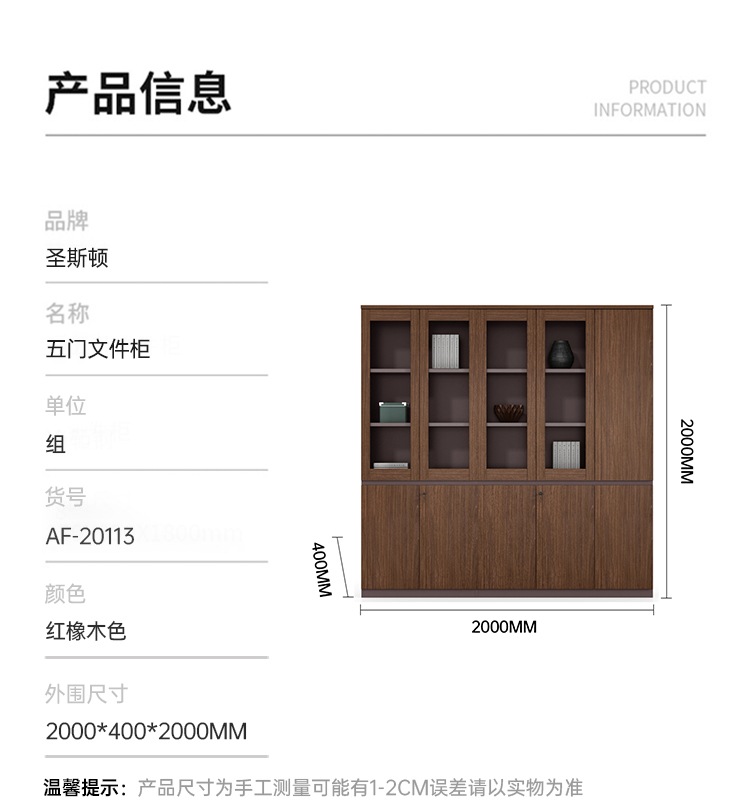 商品标题:圣斯顿AF-20113五门文件柜书柜2000*400*2000mm(单位:组)红橡木色