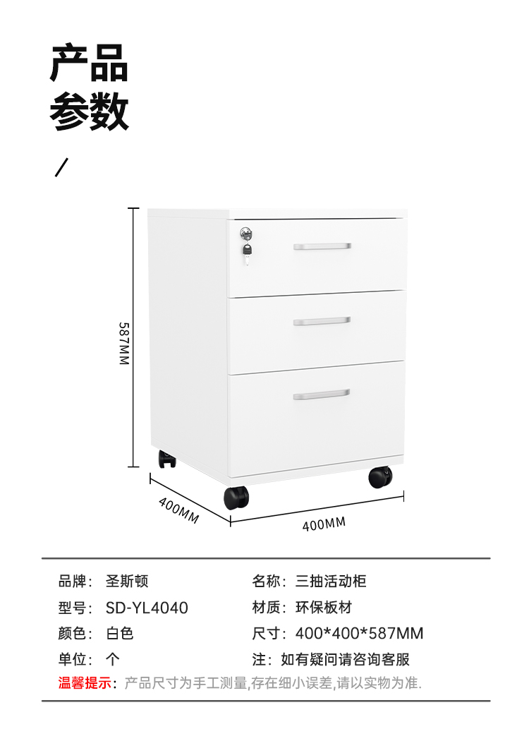 商品标题:圣斯顿 三抽活动柜 SD-YL4040 400*400*587mm 白色 个