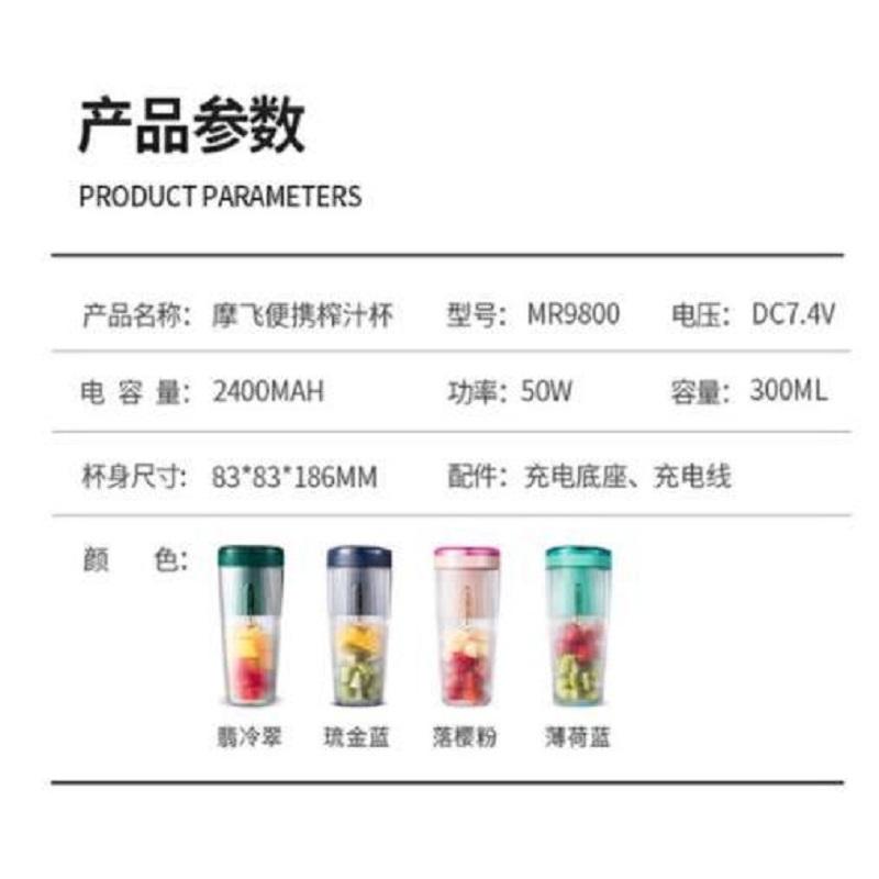 商品标题:摩飞(MORPHY) 果汁机无线榨汁机 MR9800 (个) 薄荷蓝