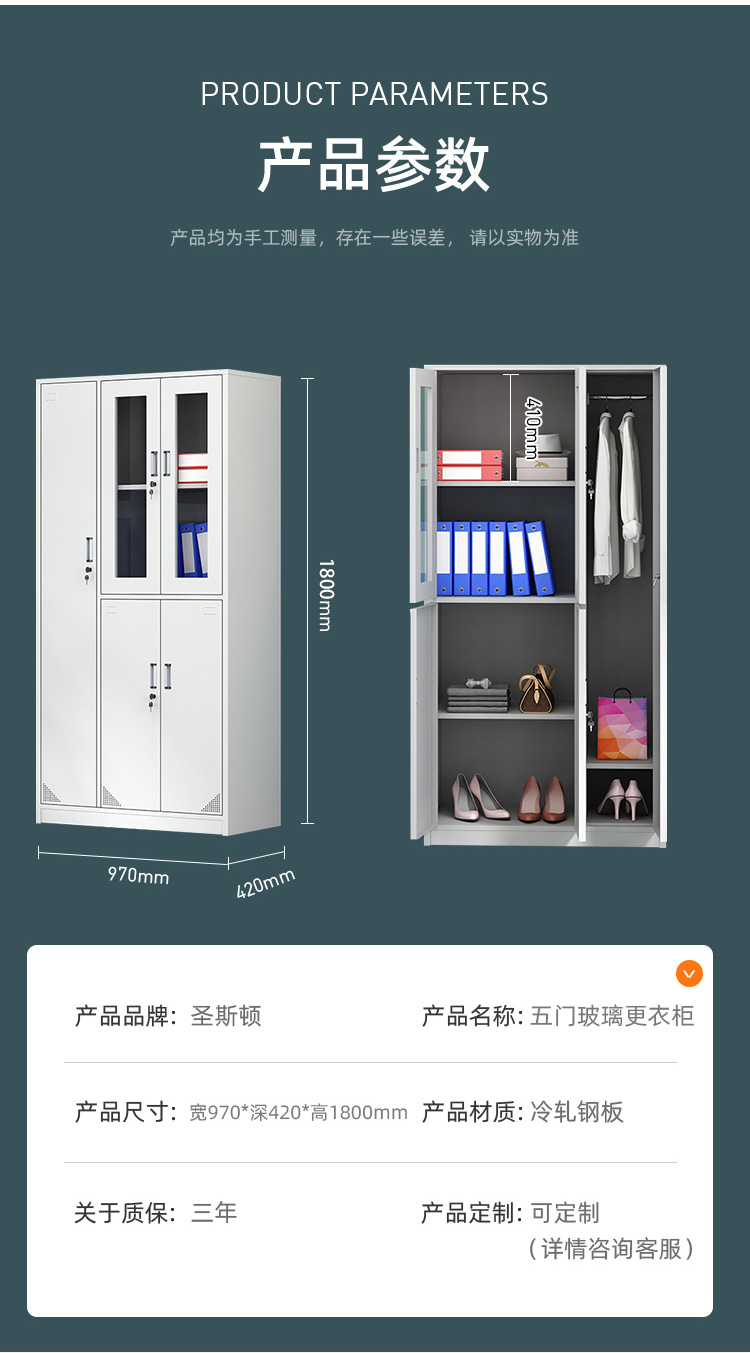 商品标题:圣斯顿SD-0152-WT五门文件柜0.5厚180*97*42cm(台)灰白色