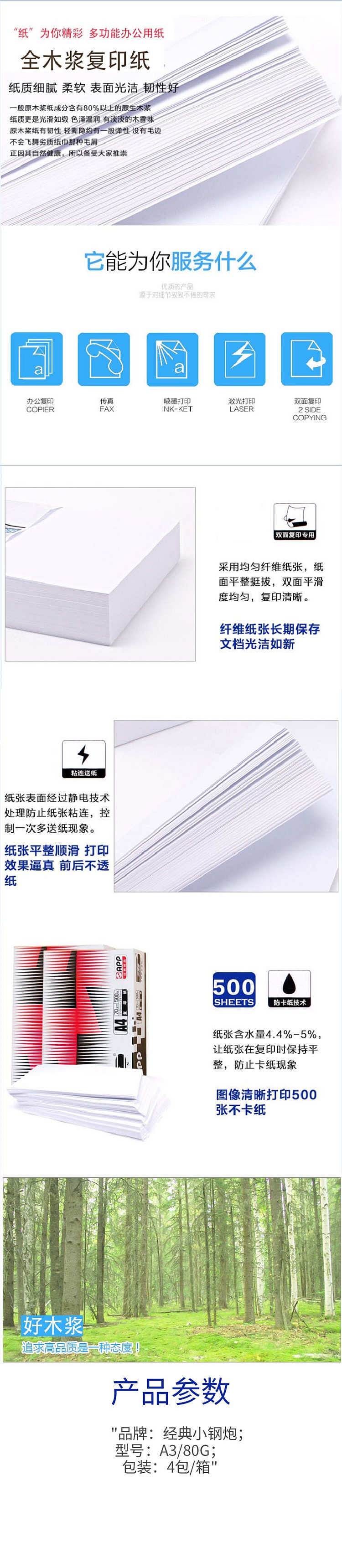 商品标题:小钢炮A3/80G复印纸500张/4包