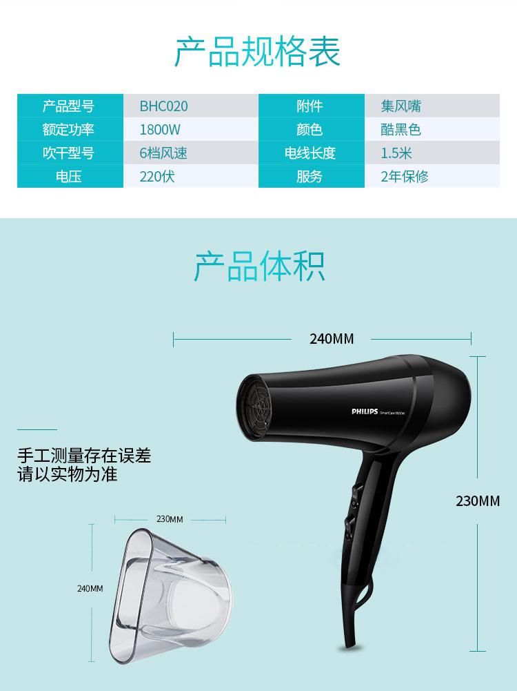 商品标题:飞利浦 BHC020/05 电吹风(套)黑色