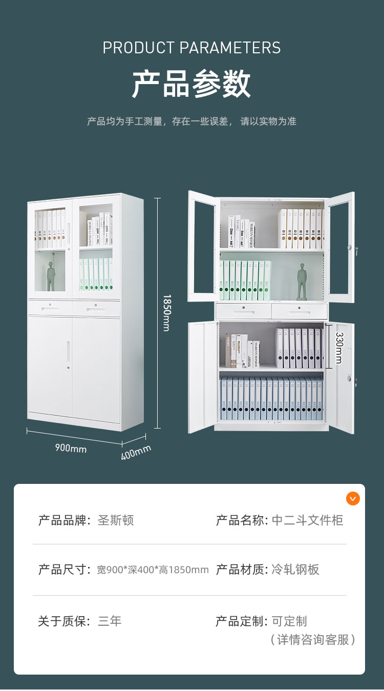 商品标题:圣斯顿SD-0410WT纯白中二斗文件柜1850*900*400mm(台)白色