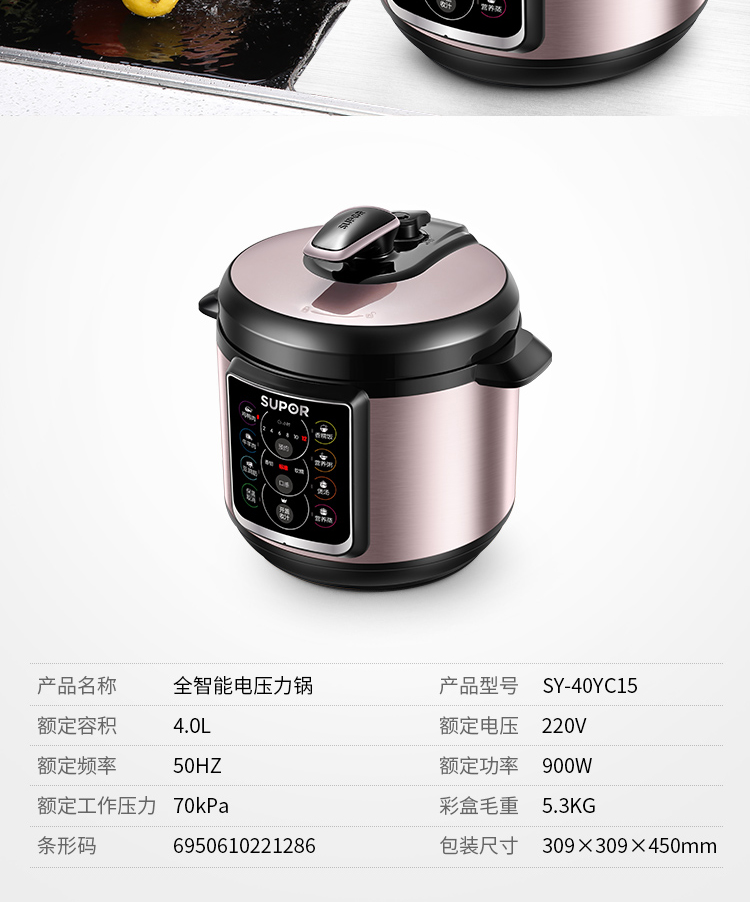商品标题:苏泊尔(SUPOR)SY-40YC15 4L 电压力锅 (个)粉色