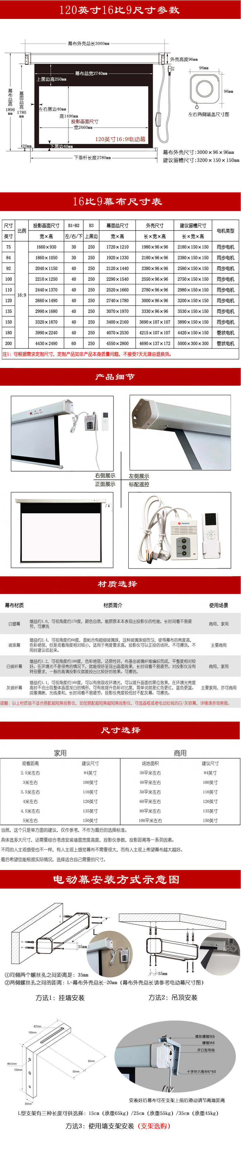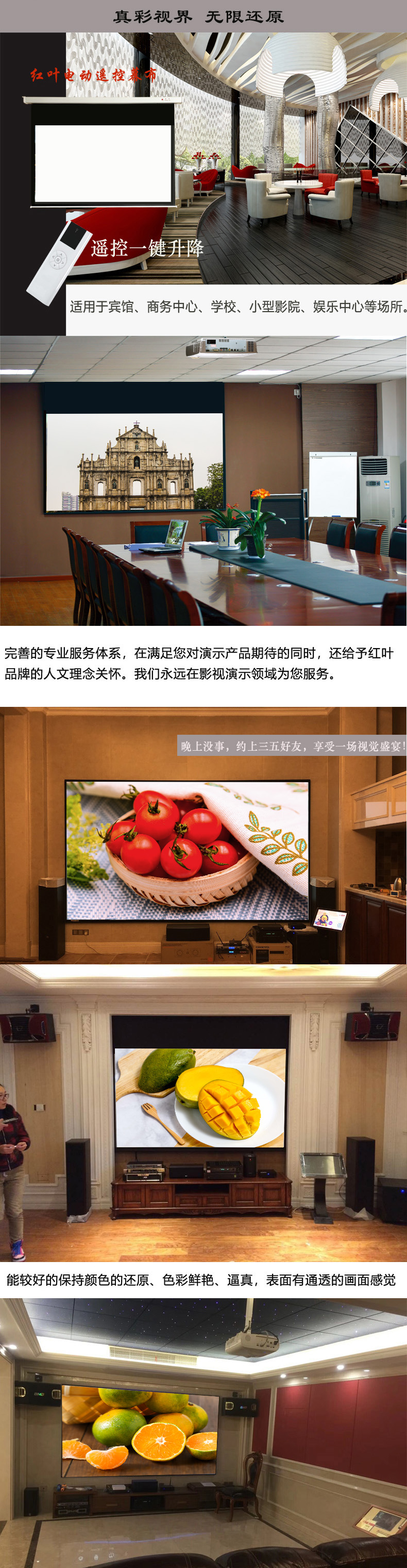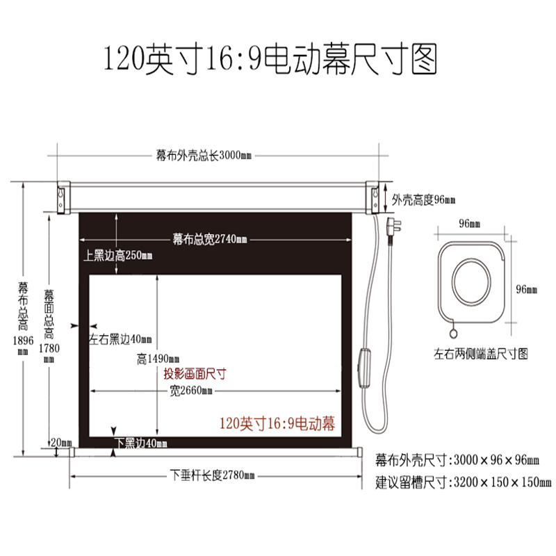 商品标题:红叶120英寸16:9遥控白玻纤幕高清遥控电动幕(单位:个)