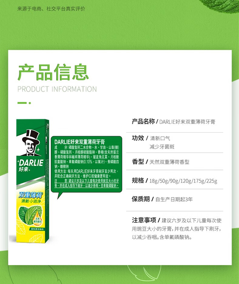 商品标题:黑人225g牙膏双重薄荷多效护理(单位:支)