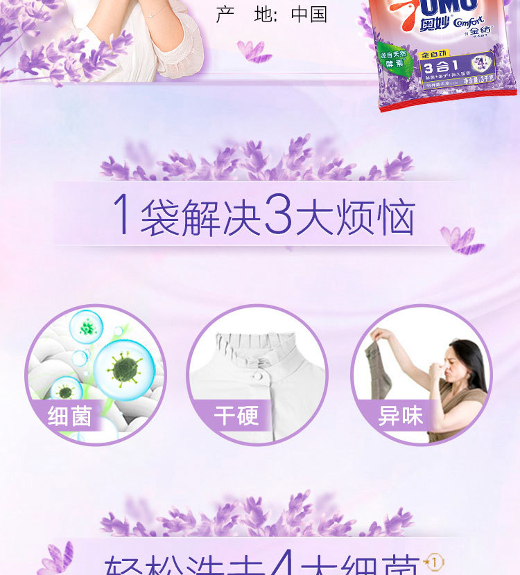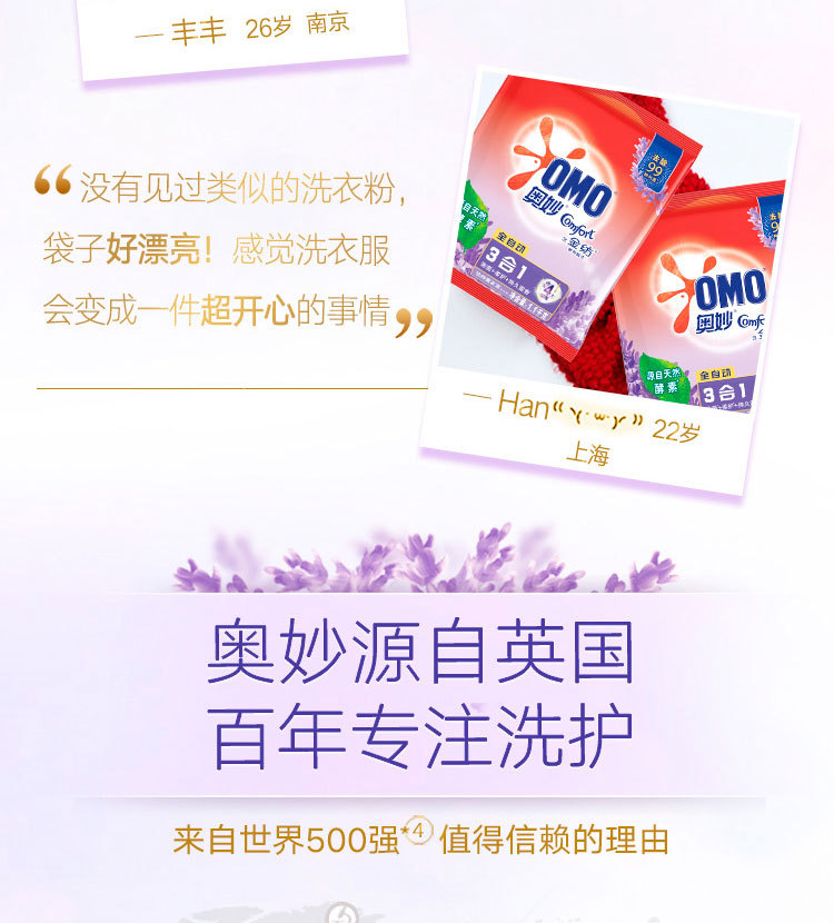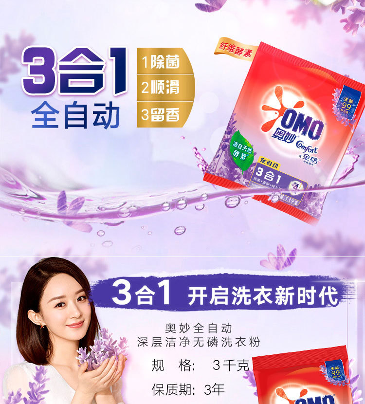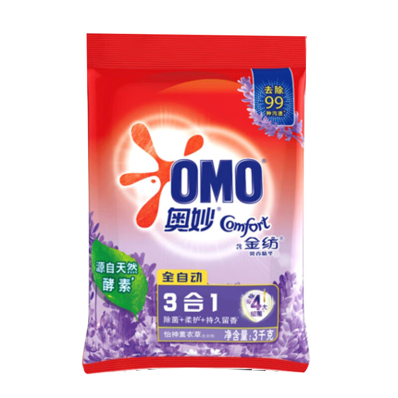 商品标题:奥妙全自动含金纺温和馨香精华无磷洗衣粉3000g(袋)