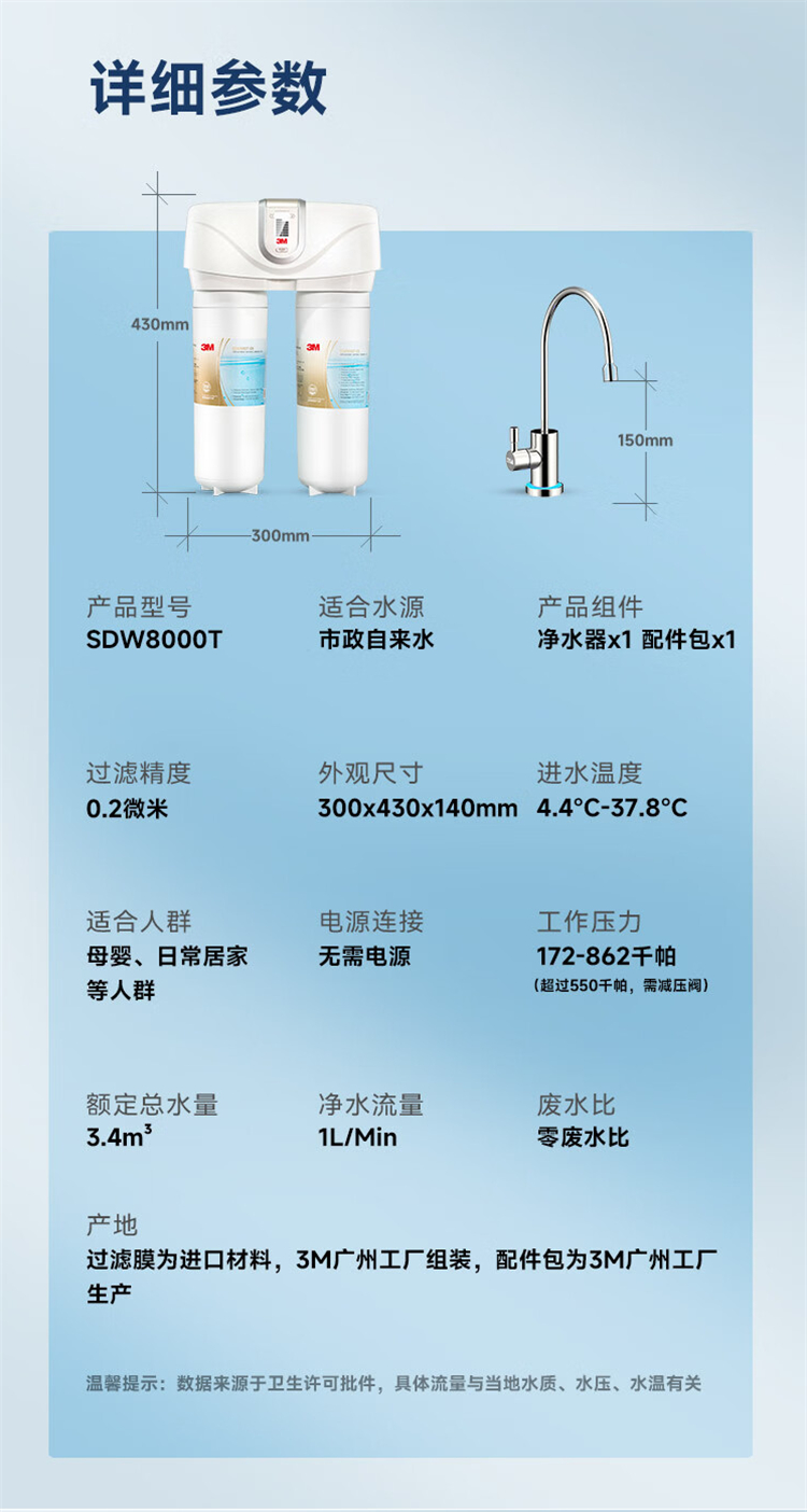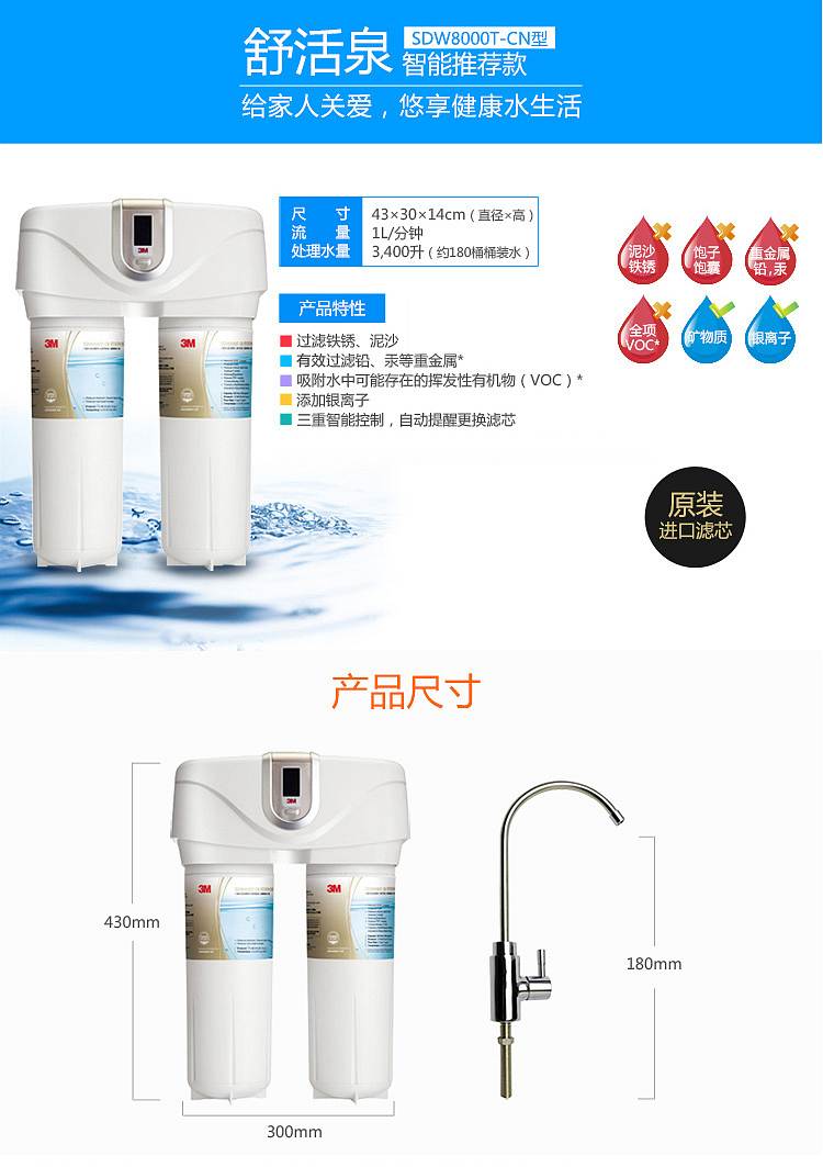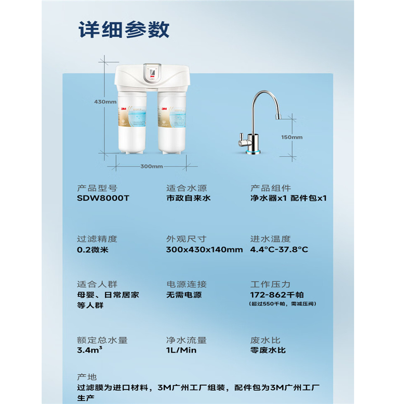 商品标题:3M/SDW8000T-CN直饮净水器1L/分钟(个)