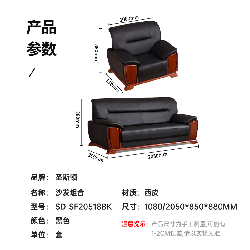 圣斯顿SD-SF20518BK单人位2张+三人位1张西皮沙发1080/2050*850*880mm(单位:套)黑色
