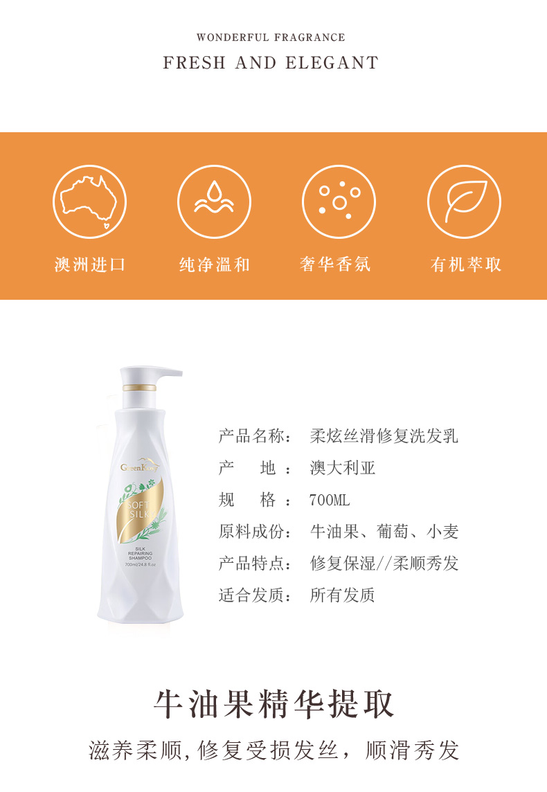 商品标题:绿色溪谷柔炫丝滑修护洗发乳700ml(单位:瓶)