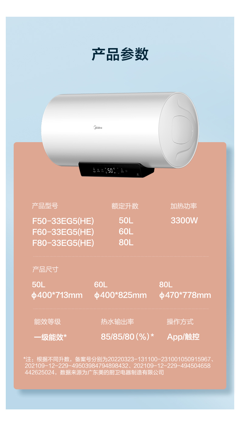 商品标题:美的(Midea)F60-33EG5(HE)电热水器 白色 (单位:台)