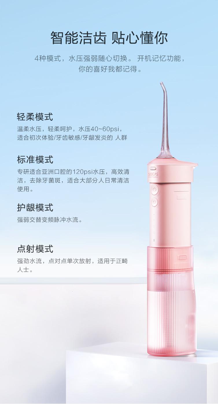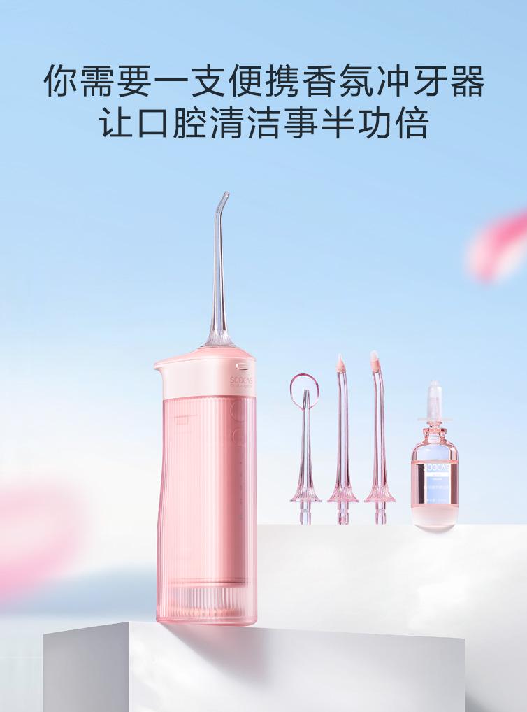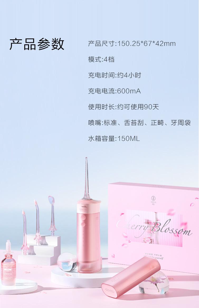 素士 W1 便携抽拉式冲牙器 樱花粉 150ML (台)