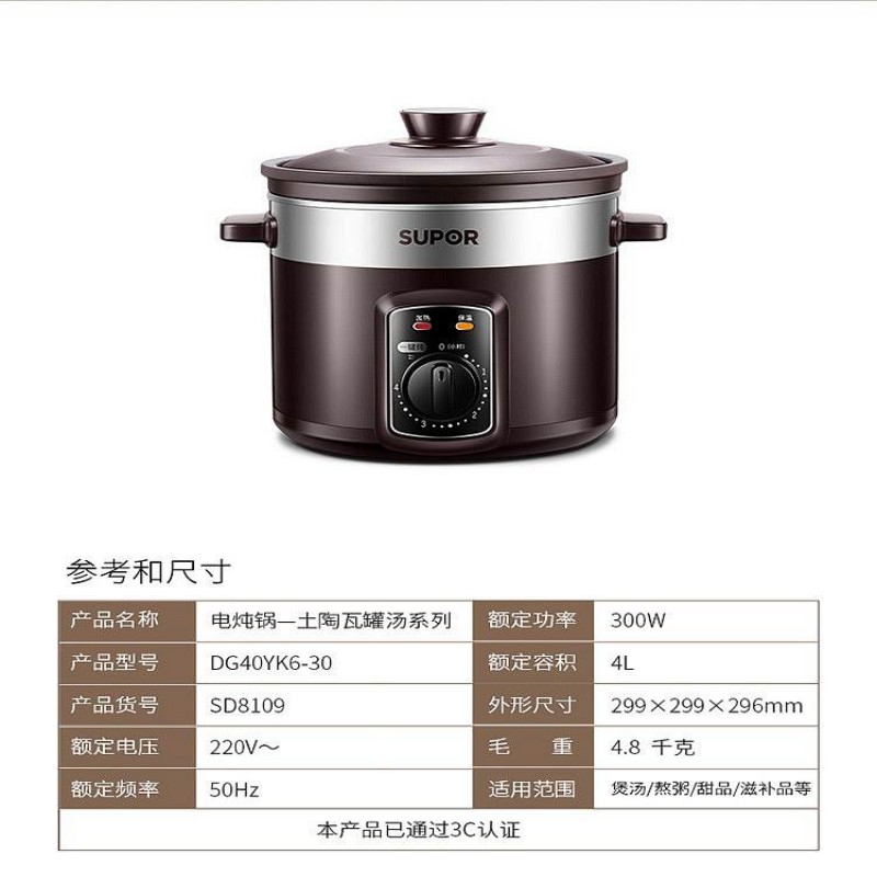 商品标题:苏泊尔DG40YK6-30电炖锅棕色4L(台)