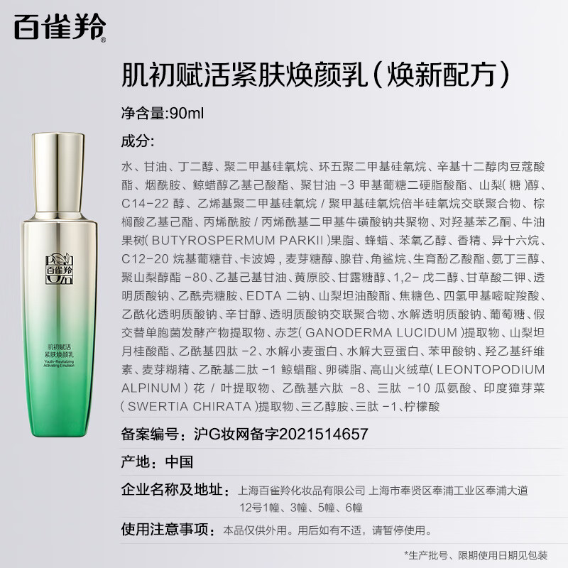 商品标题:百雀羚肌初赋活紧肤焕颜乳90g(单位:瓶)