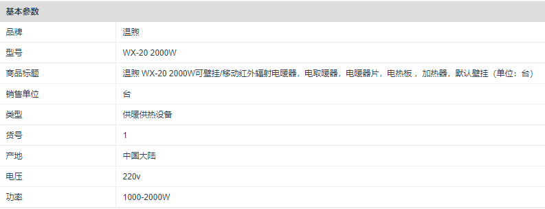 商品标题:温煦 WX-20 2000W可壁挂/移动红外辐射电暖器,电取暖,电暖器片,电热板(单位:台)默认壁挂