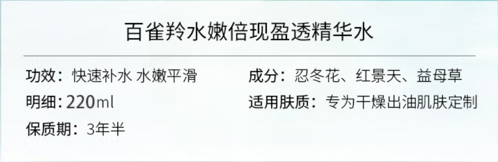 百雀羚(PECHOIN)水嫩倍现盈透精华水100ml(单位:瓶)