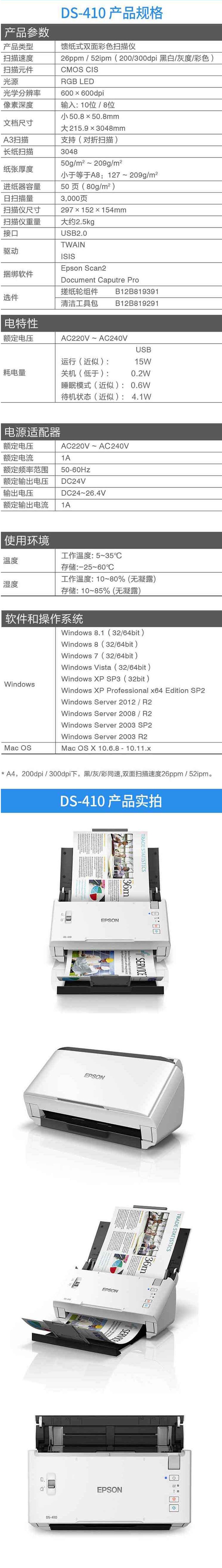 产品名称:爱普生DS-410馈纸式扫描仪白(台)