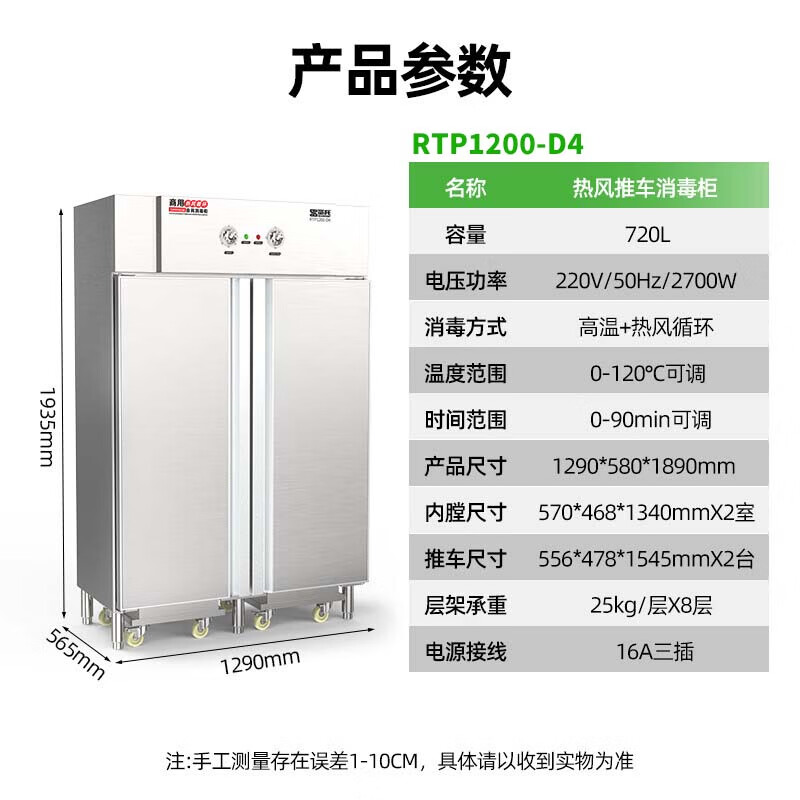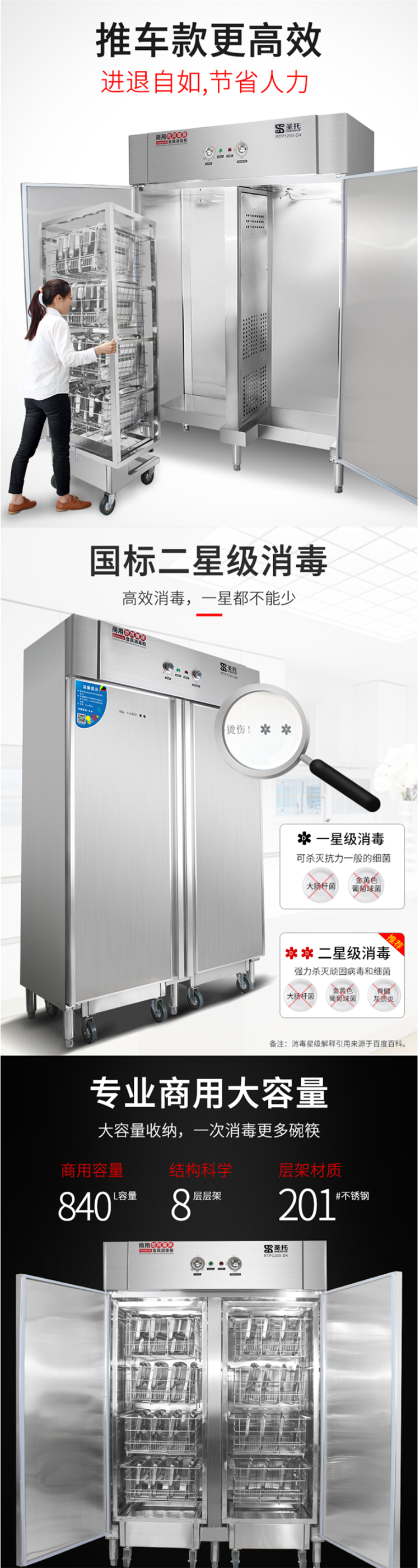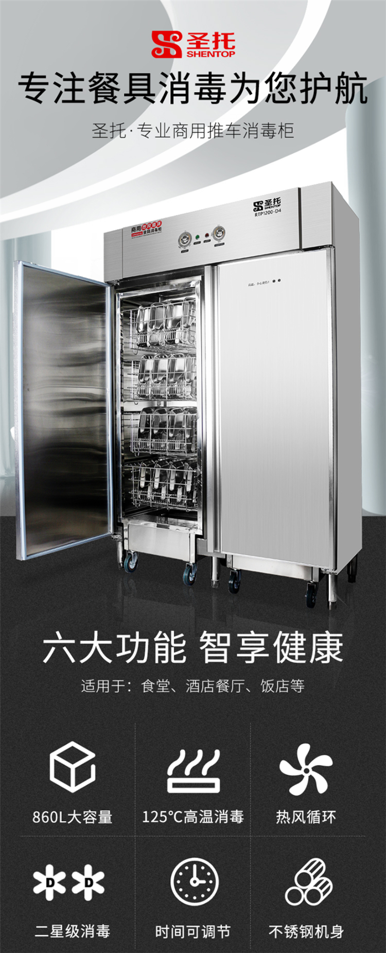 圣托RTP1200-D4 推车式高温 热风循环|2700W|720L八层消毒柜(单位:台)