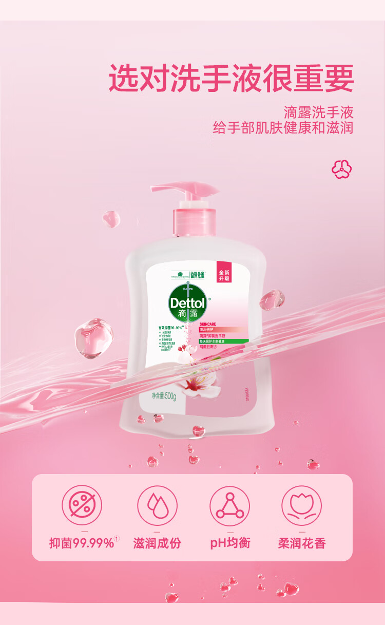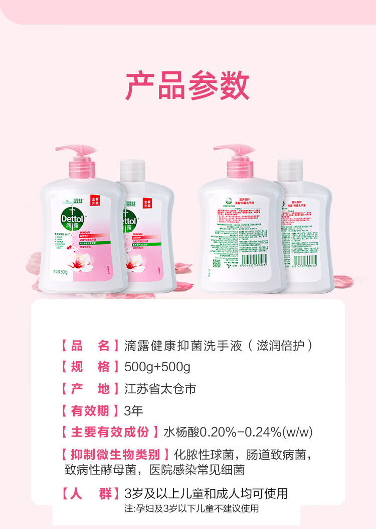 商品标题:滴露健康抑菌洗手液滋润倍护500g+500g瓶装补充液(组)