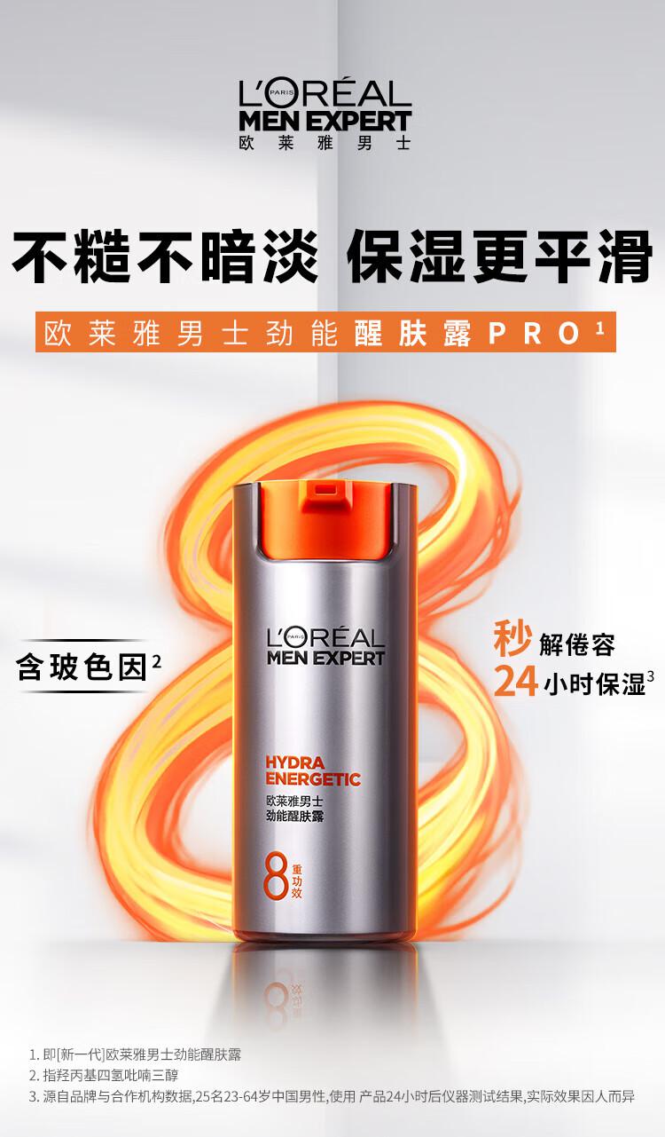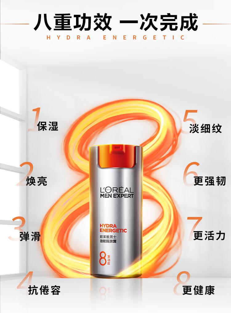 欧莱雅(LOREAL)男士劲能醒肤露8重功效 50ml(瓶)