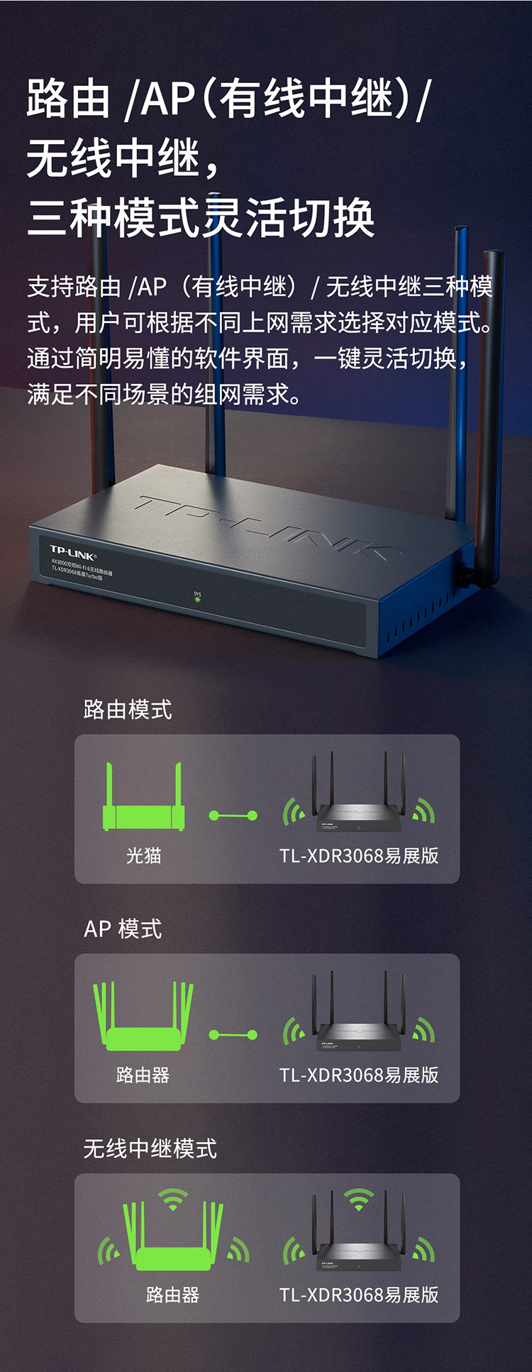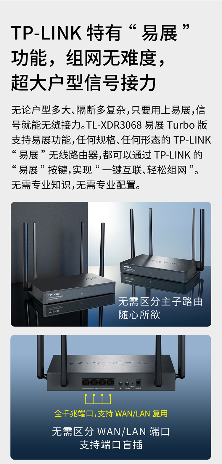商品标题:普联TL-XDR3068易展Turbo版AX3000M千兆路由器(台)