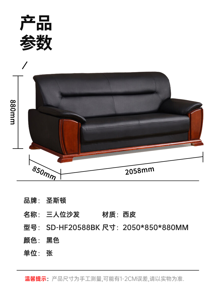商品标题:圣斯顿SD-HF20588BK三人位西皮沙发2050*850*880mm(张)