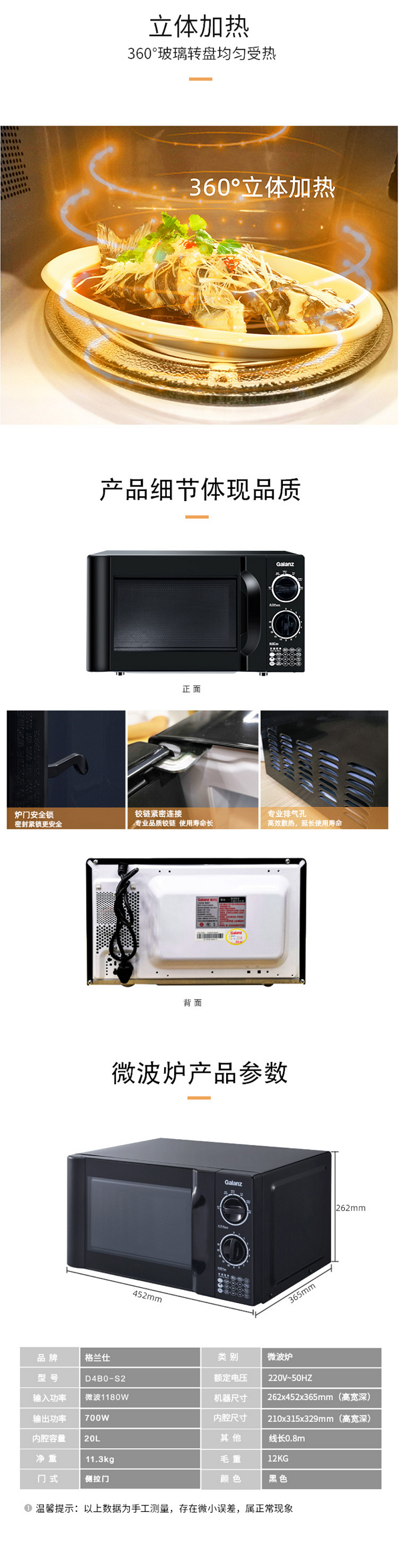 格兰仕(Galanz)D4B0-S2微波炉黑色20L(单位:台)