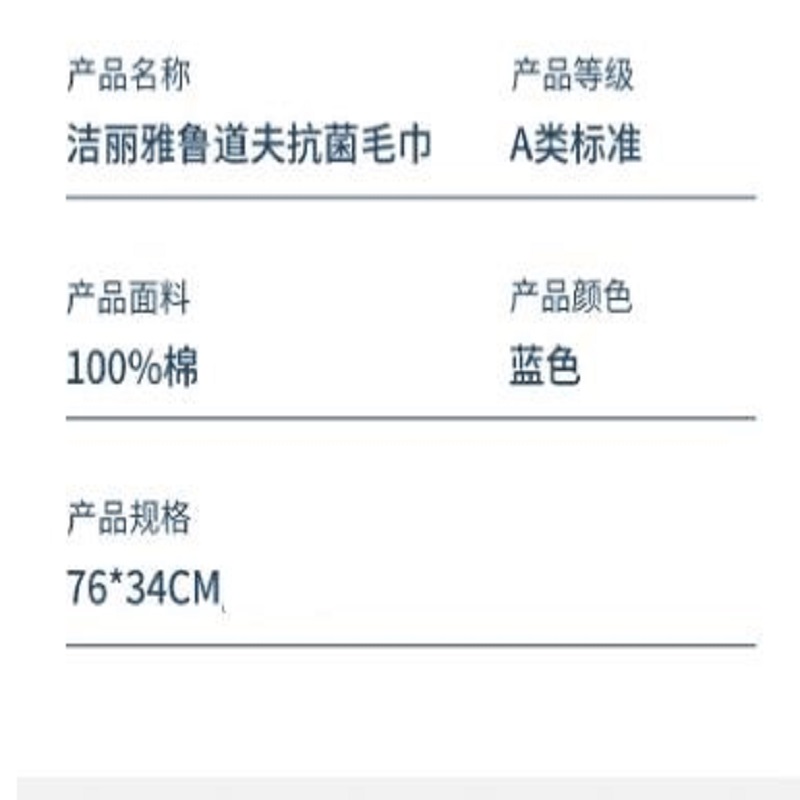 商品标题:洁丽雅 W0159抗菌毛巾34*76cm/115g 袋装蓝色(单位:条)