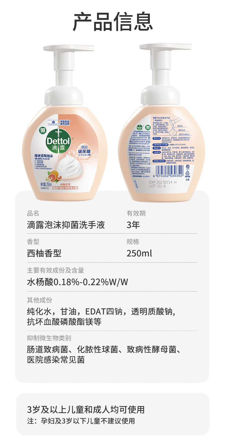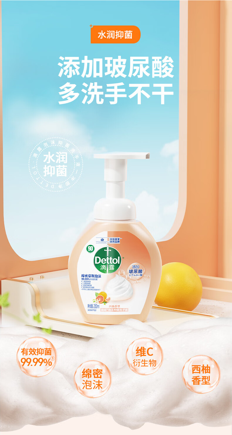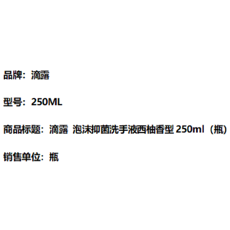 商品标题:滴露 泡沫抑菌洗手液西柚香型250ml(瓶)