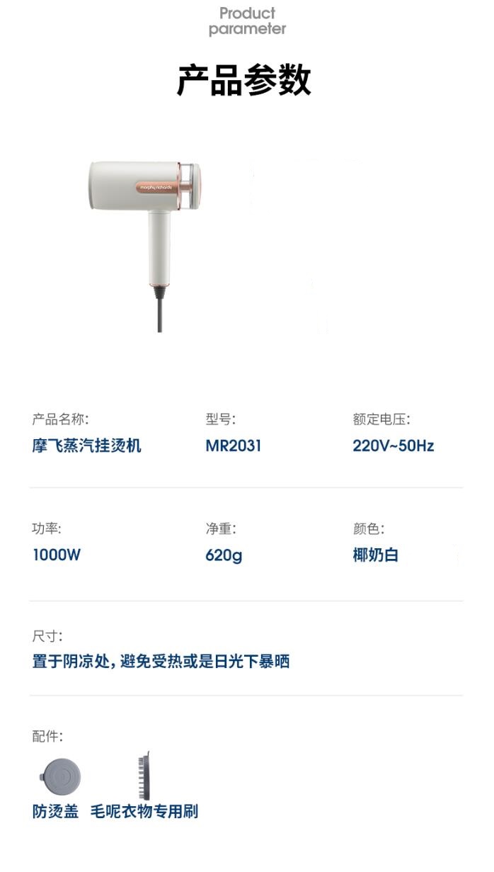 商品标题:摩飞电器(Morphyrichards)MR2031 挂烫机(单位:台)白