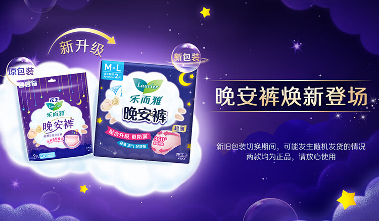 商品标题:花王乐而雅超熟睡裤型卫生巾夜用晚安裤M-L号2片(包)