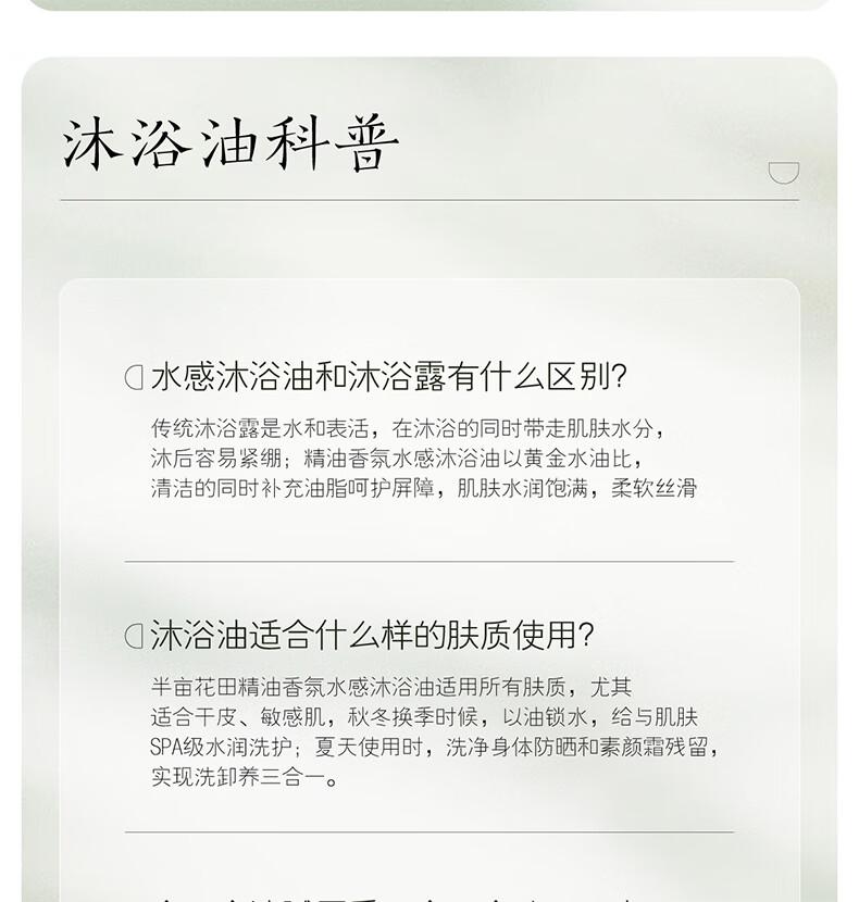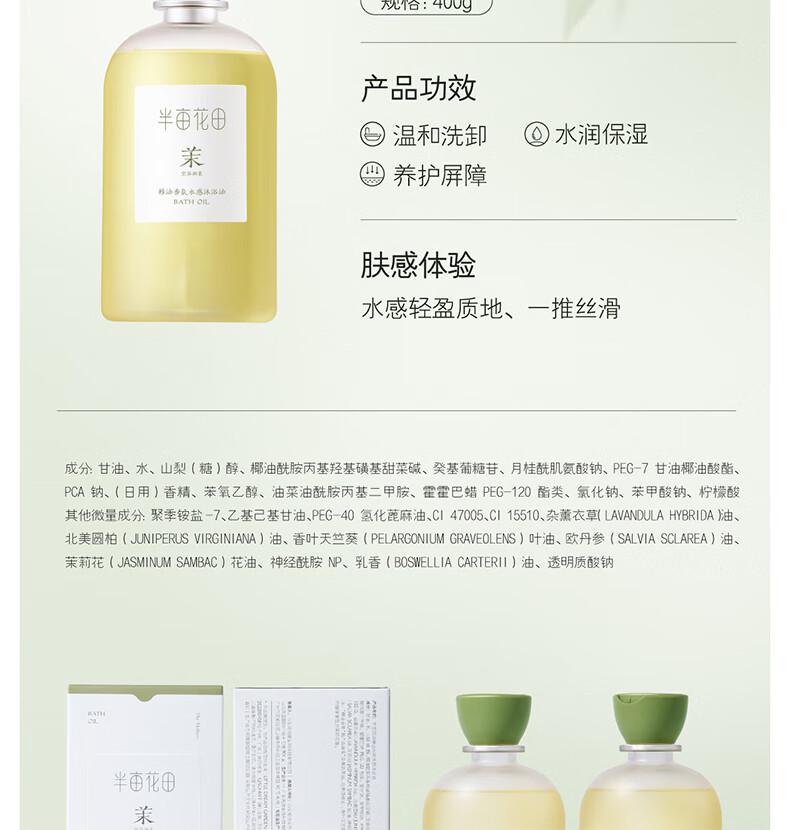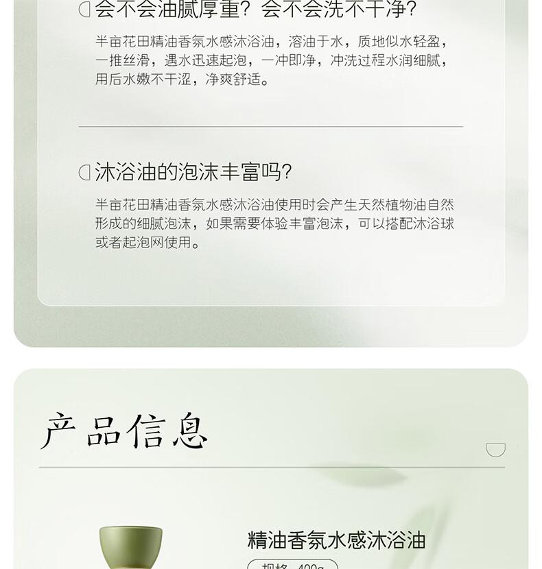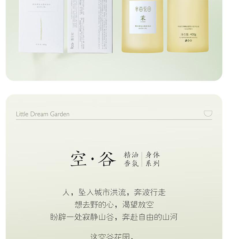 商品标题:半亩花田(空谷雨茉)精油香氛水感沐浴露400ml(瓶)