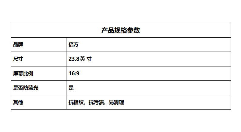 商品标题:倍方 4277电脑显示器防蓝光23.8英寸(16:9)防蓝光膜 悬挂式(张)