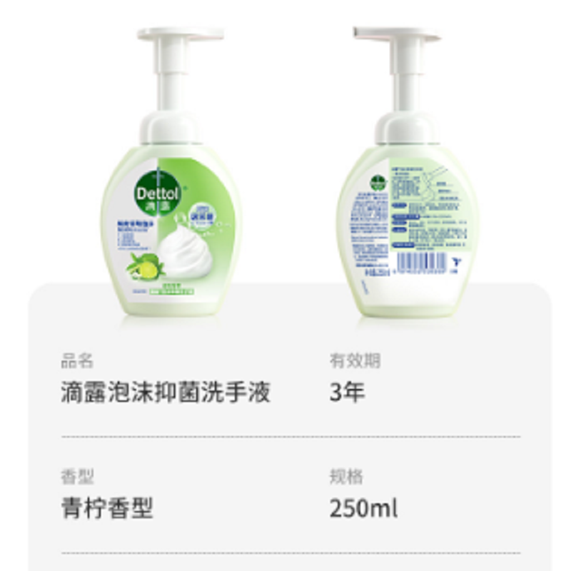 商品标题:滴露(Dettol)泡沫洗手液青柠香型250ml(瓶)