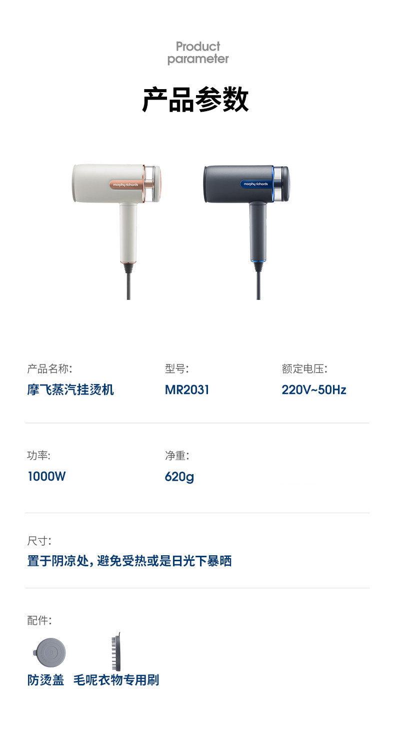 商品标题:摩飞电器(Morphyrichards) MR2031 手持蒸汽挂烫机 灰色( 单位:台)