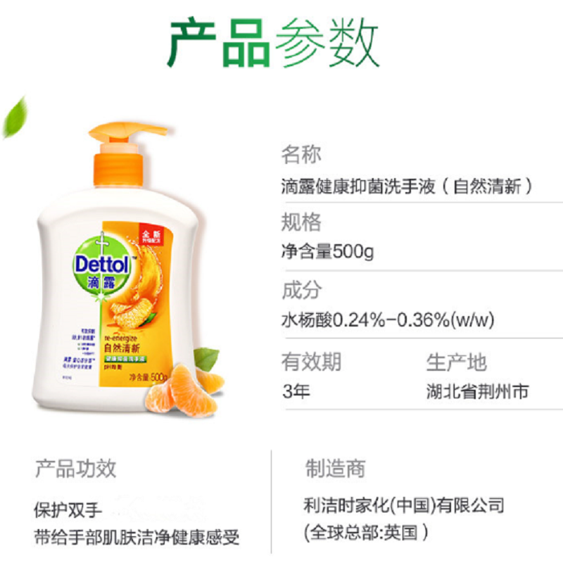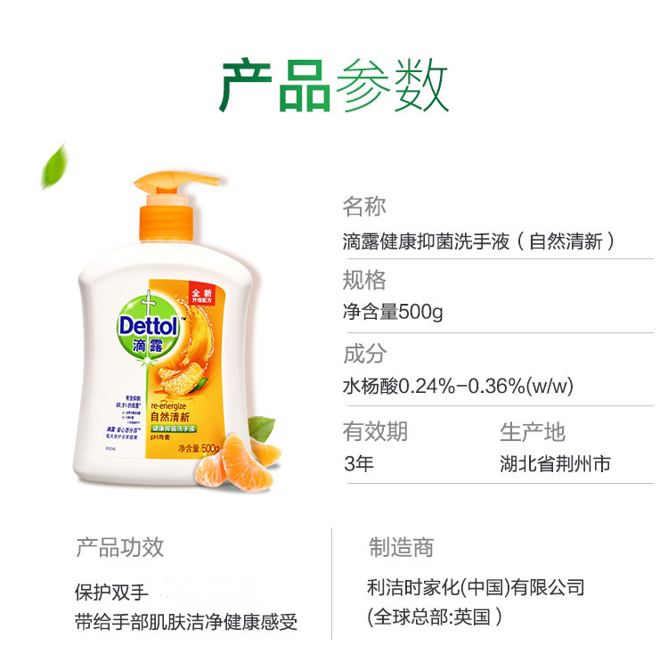 商品标题:滴露500ml自然清新洗手液(瓶)
