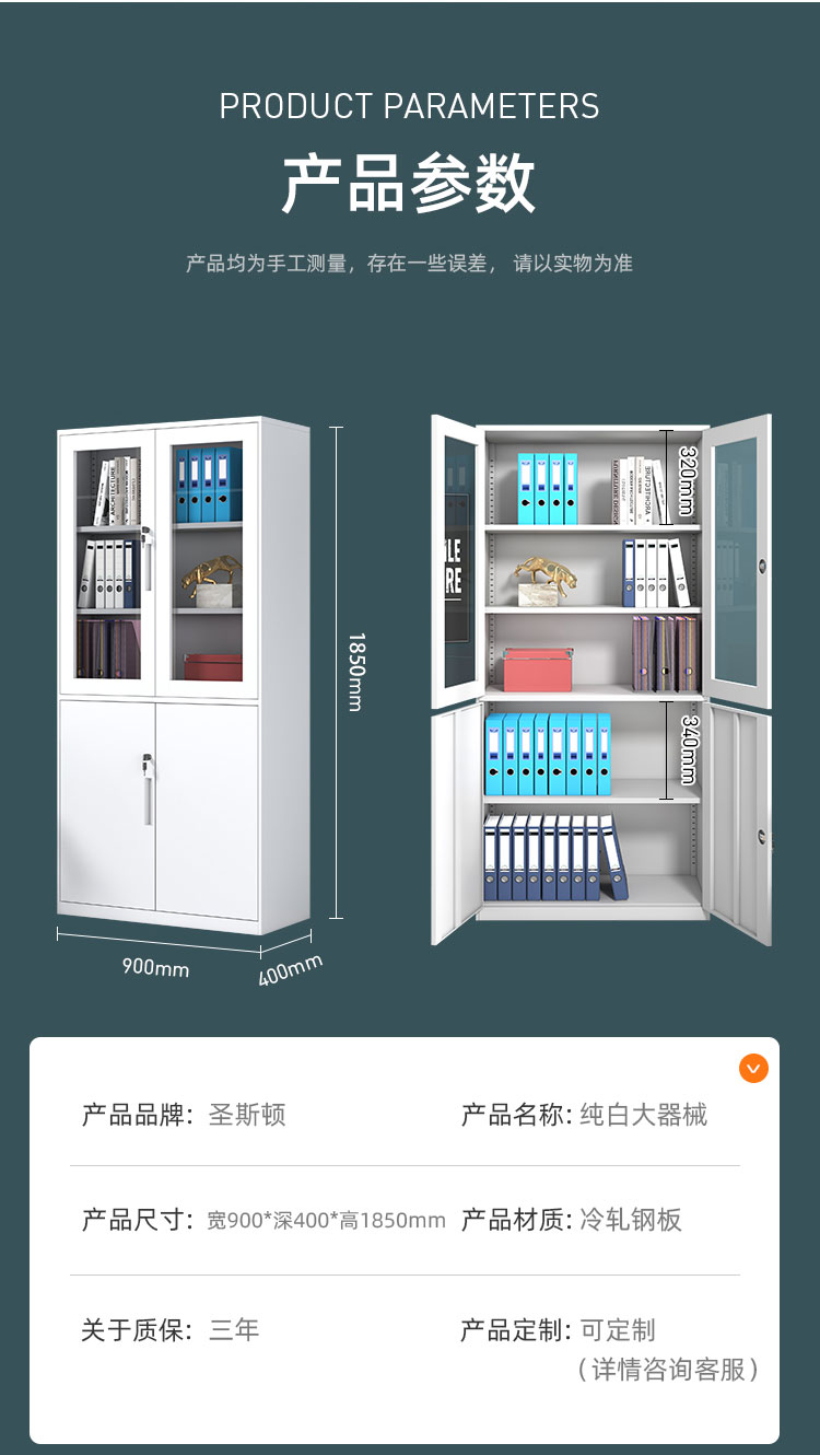 商品标题:圣斯顿SDC-0101-WT文件柜灰白色185*90*40cm(拆装)(台)