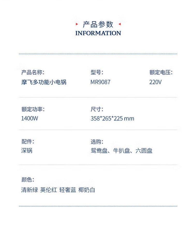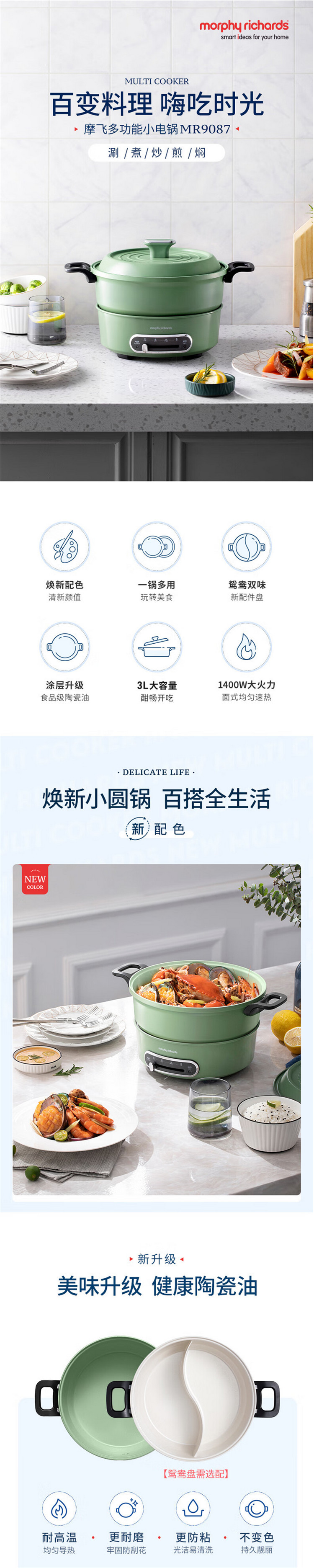 商品标题:摩飞电器(Morphyrichards)MR9087电火锅轻奢蓝 (台)