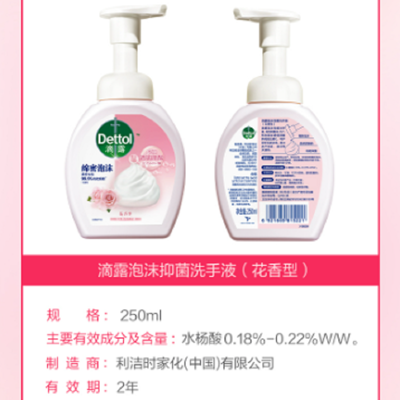 商品标题:滴露Dettol泡沫抑菌洗手液花香型250ml (瓶)