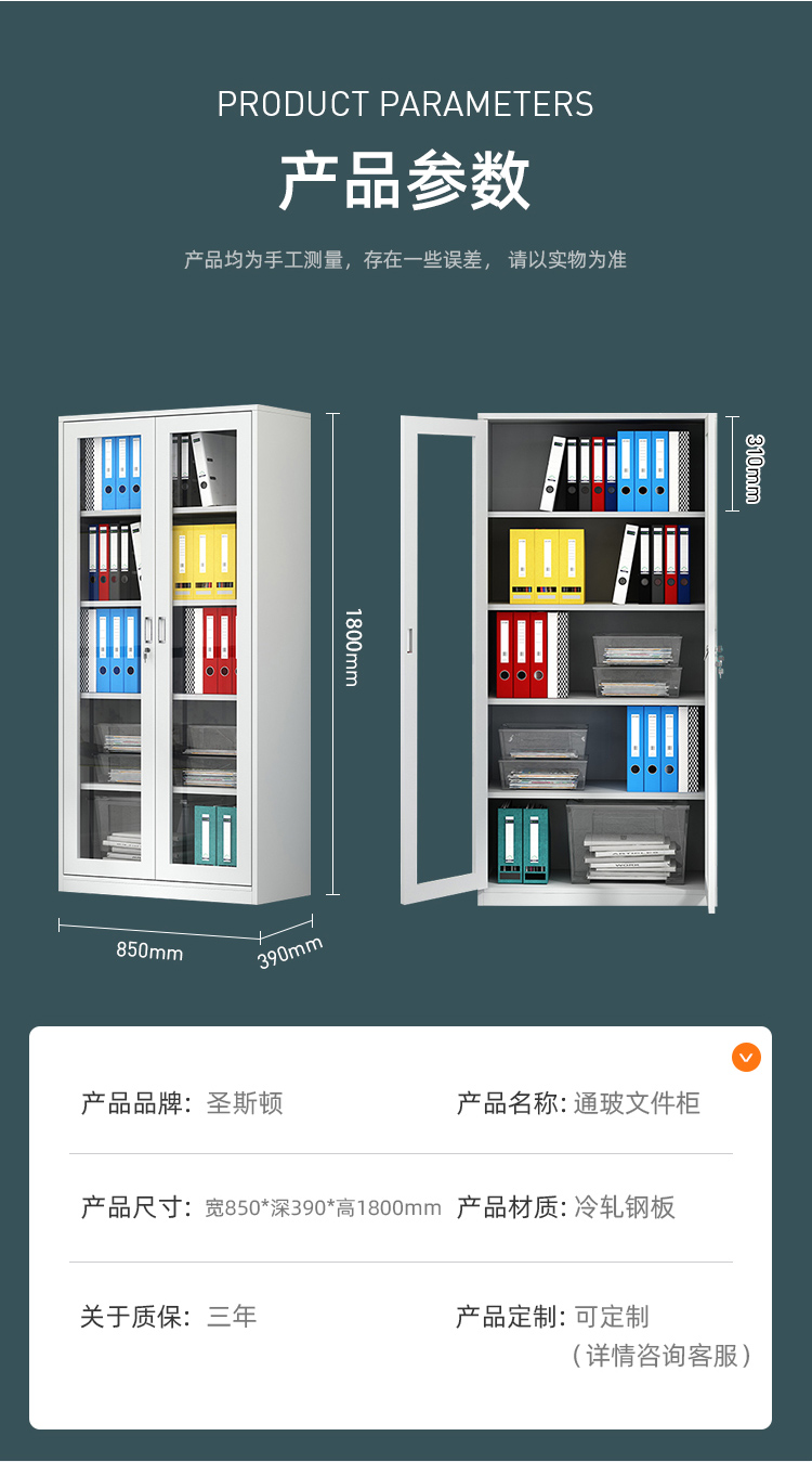 商品标题:圣斯顿SD0112-WT通玻开门文件柜整装1800*850*390m(台)灰白