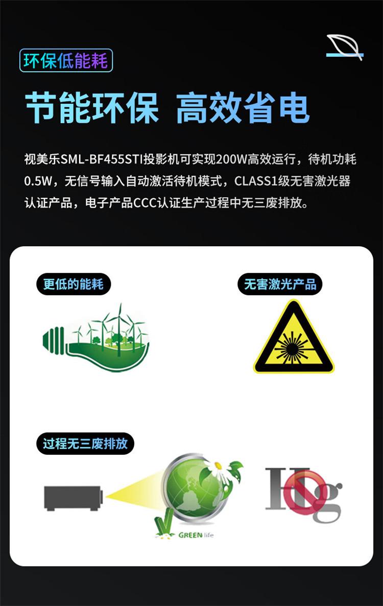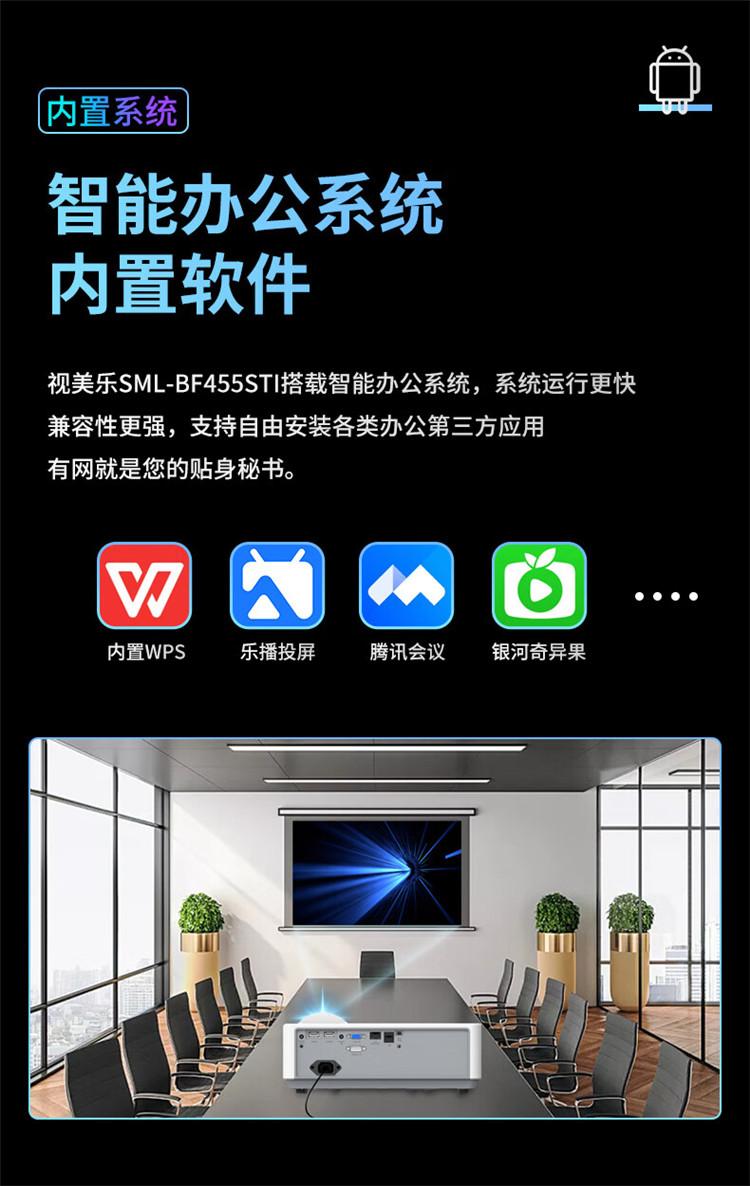 视美乐SML-BF455STI短焦激光投影仪全高清1080P4500流明120HZ HDR无线同屏(单位:台)