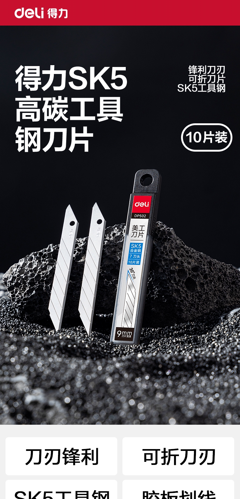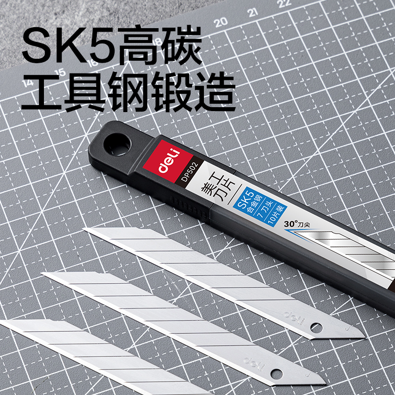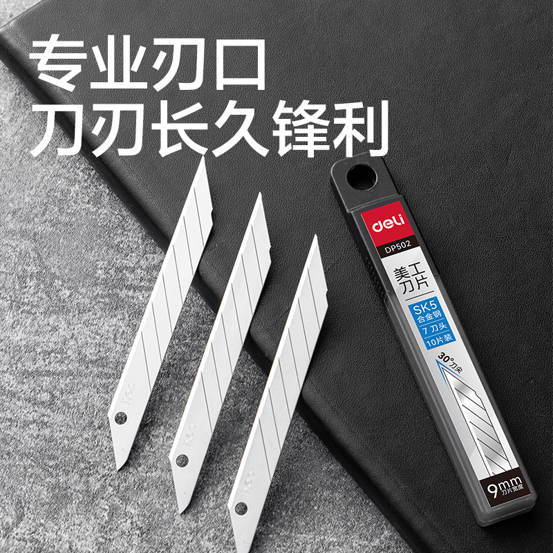 得力DP502美工刀片9mm30°SK5(银色)(盒)