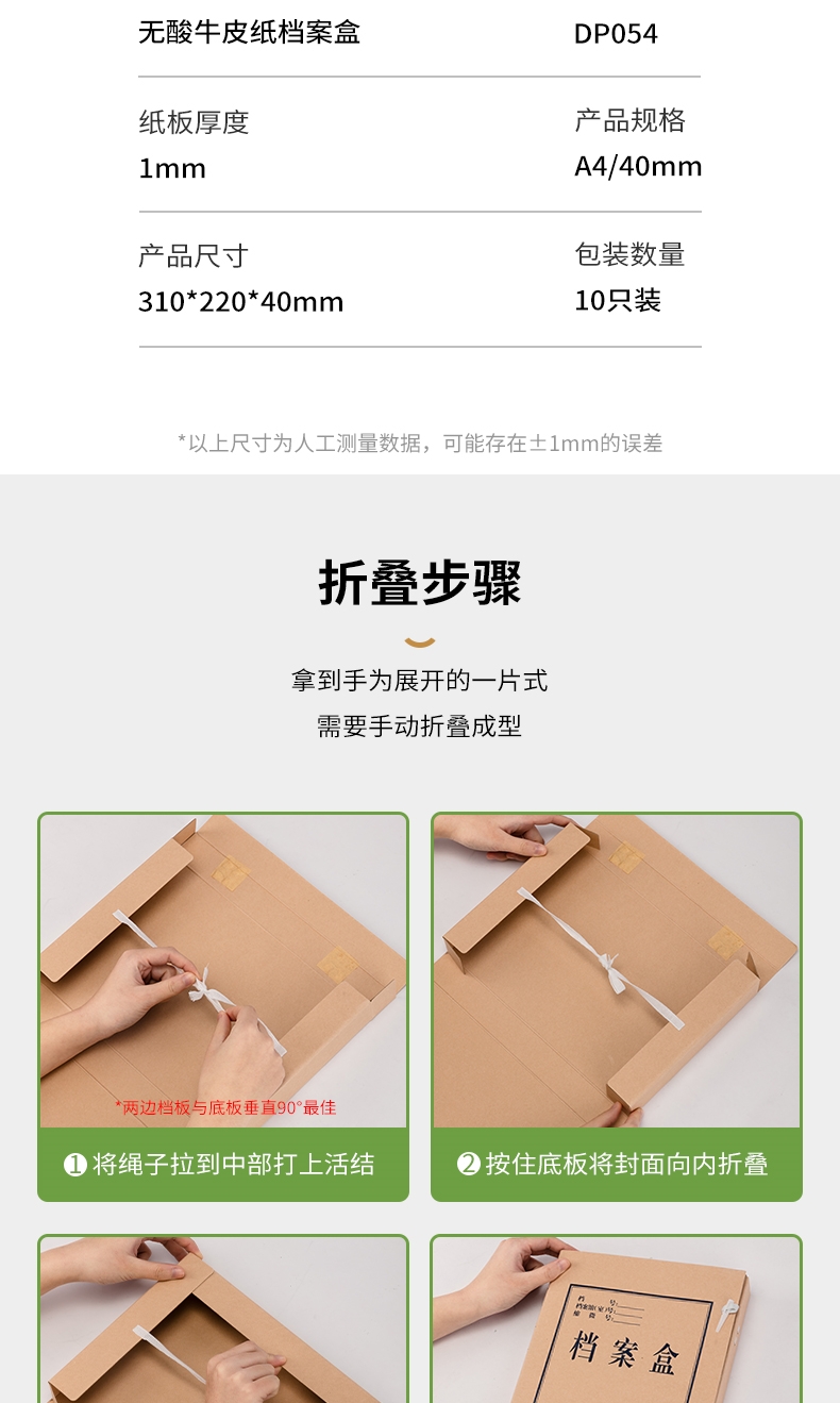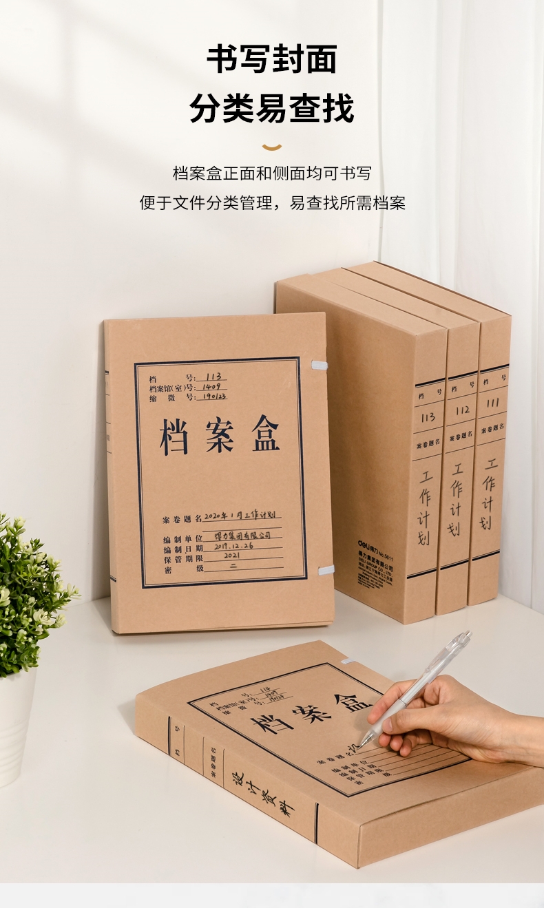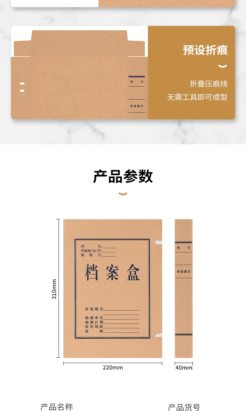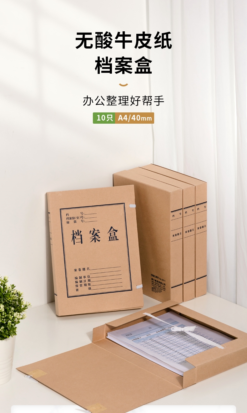 商品标题:得力DP054_340g无酸对裱牛皮纸40mm档案盒(棕黄)(10个/包)