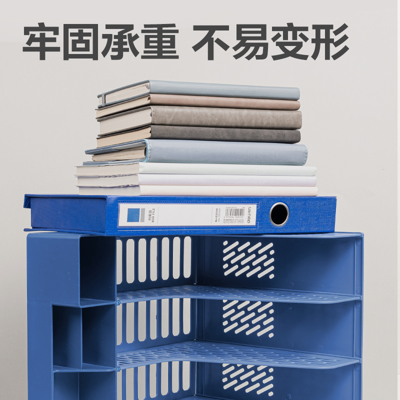 商品标题:得力DP532四联文件框带笔筒(蓝色)(袋)