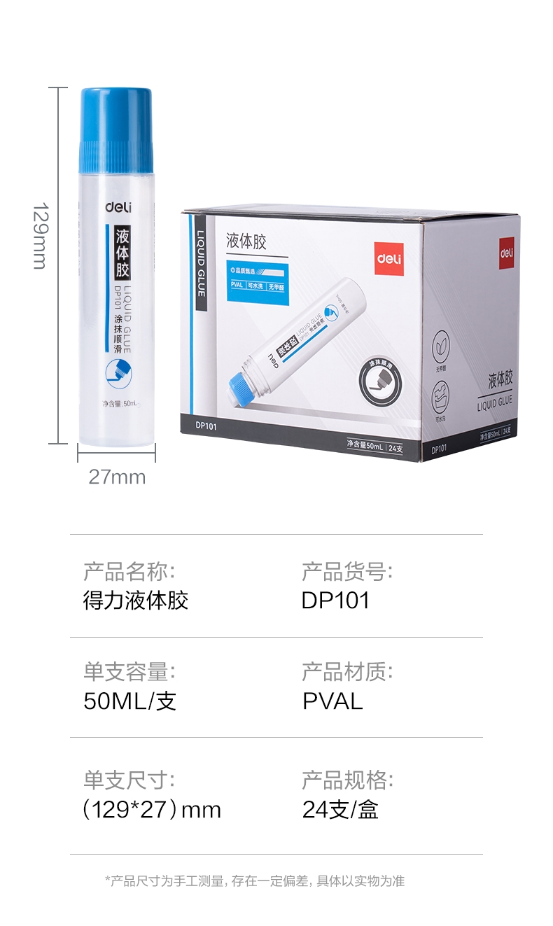 商品标题:得力DP101 PVAL液体胶50ml(蓝色)(瓶)