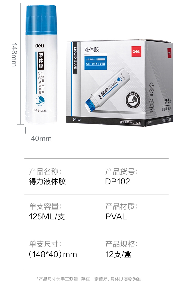 商品标题:得力DP102 PVAL液体胶125ml(蓝色)(瓶)