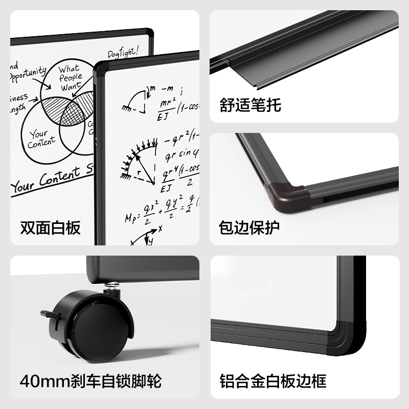 商品标题:得力DP301_H型可升降双面白板1200*900mm(黑)(块)