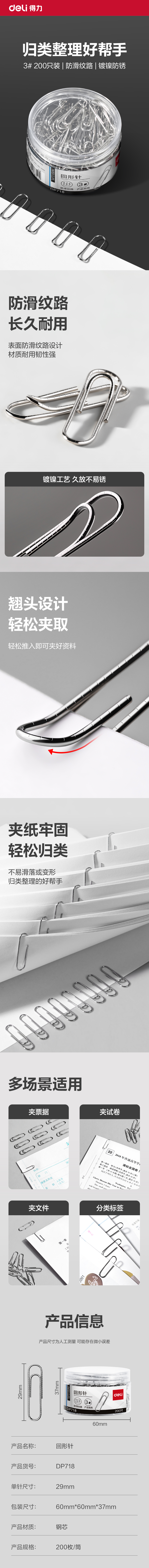 商品标题:得力DP718防滑回形针3#(银)(200枚/筒)
