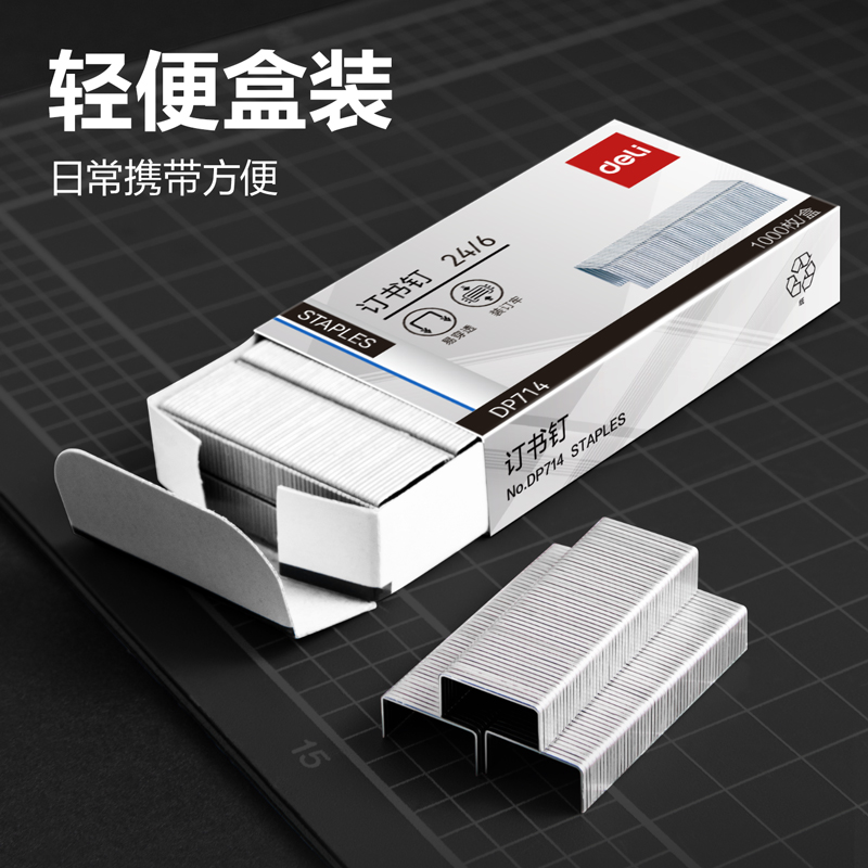 商品标题:得力DP714订书针12#(银)(1000枚/盒)