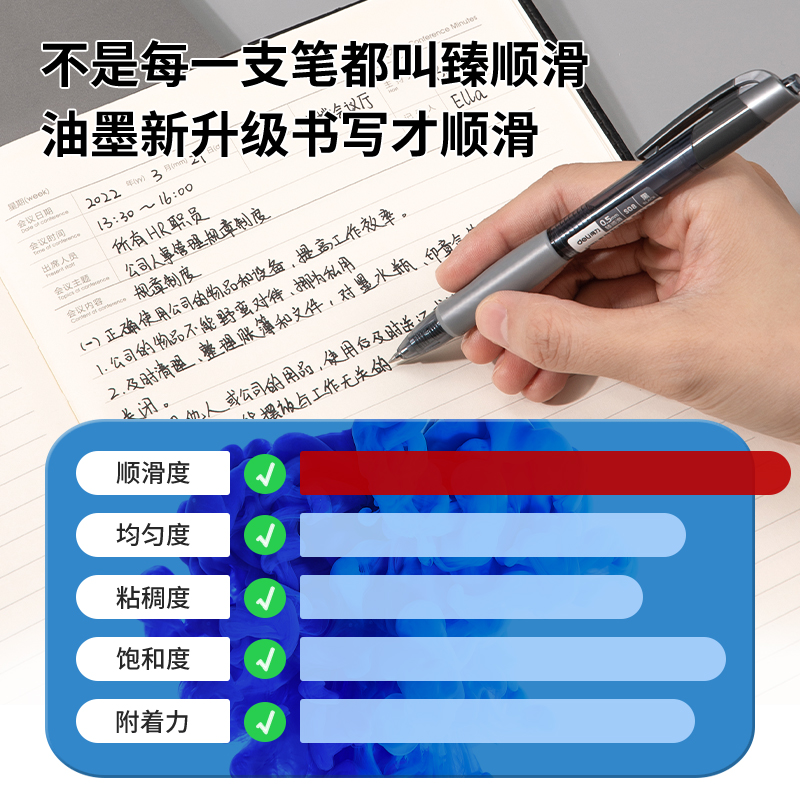 得力DP208臻顺滑办公中性笔0.5mm弹簧头(黑色)(支)